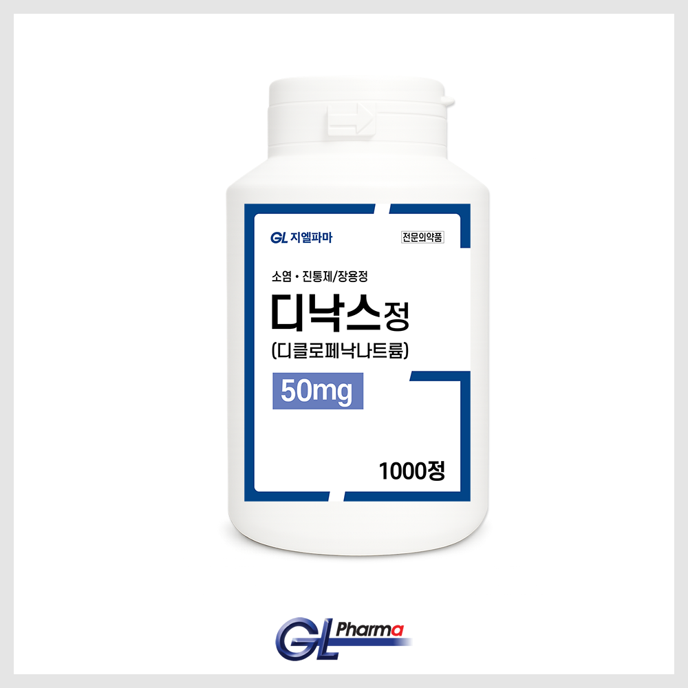 가. 시험약 디낙스정(디클로페낙나트륨)[지엘파마(주)]와 대조약 디페인정(디클로페낙나트륨)[동광제약(주)]을 2x2 교차시험으로 각 1정씩 건강한 성인에게 공복 시 단회 경구 투여하여 26명의 혈중 디클로페낙을 측정한 결과 비교평가항목치(AUCt, Cmax)를 로그변환하여 통계처리 하였을 때 평균치 차의 90% 신뢰구간이 log0.8에서 log1.25 이내로서 생물학적으로 동등함을 입증하였다.
